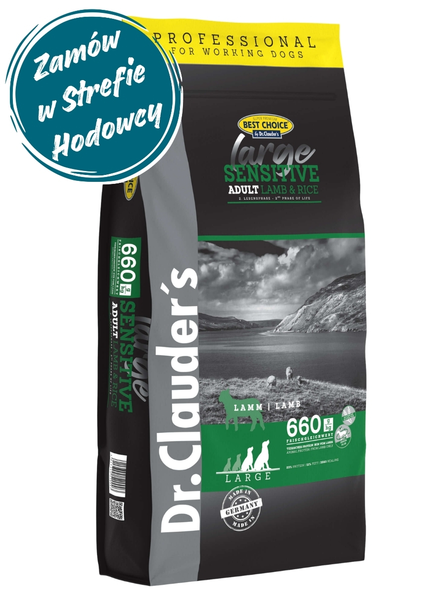 Dr.Clauder's Best Choice SENSITIVE LARGE LAMB & RICE - Karma sucha - JAGNIĘCINA & RYŻ DUŻE RASY - 20kg
