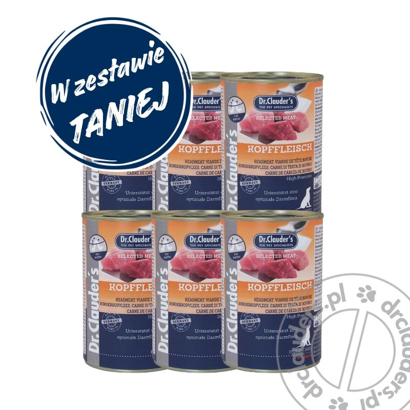 Dr.Clauder's Selected Meat KOPFFLEISH - Karma mokra dla psów GŁOWIZNA - TANIEJ W ZESTAWIE 6x400g
