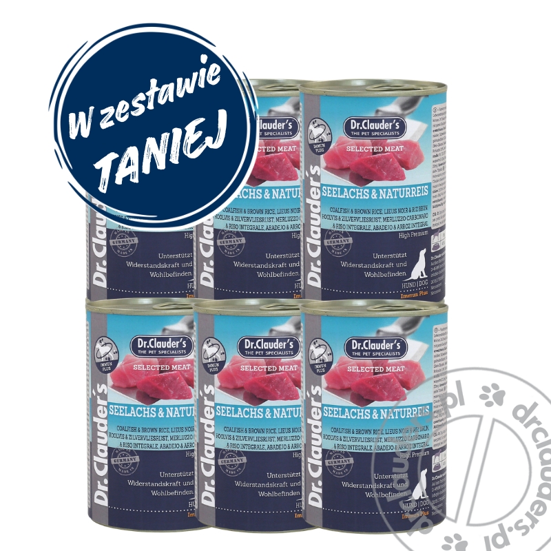 Dr.Clauder's Selected Meat SEELACHS & NATURREIS - Karma mokra DORSZ CZARNY & RYŻ BRĄZOWY - TANIEJ W ZESTAWIE 6x400g