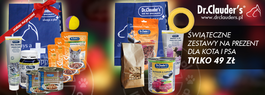 Przygotowaliśmy specjalne zestawy święteczne - idealne "pod choinkę" dla Twojego czworonoga, wraz z torbą do zapakowania. Coś zdrowego, coś pysznego, coś do zabawy- na pewno ucieszy każdego psa i każdego kota! Zamów je już dziś - w super cenie tylko 49 zł. Promocja obowiązuje do 31.12.2015 lub do wyczerpania zapasów.